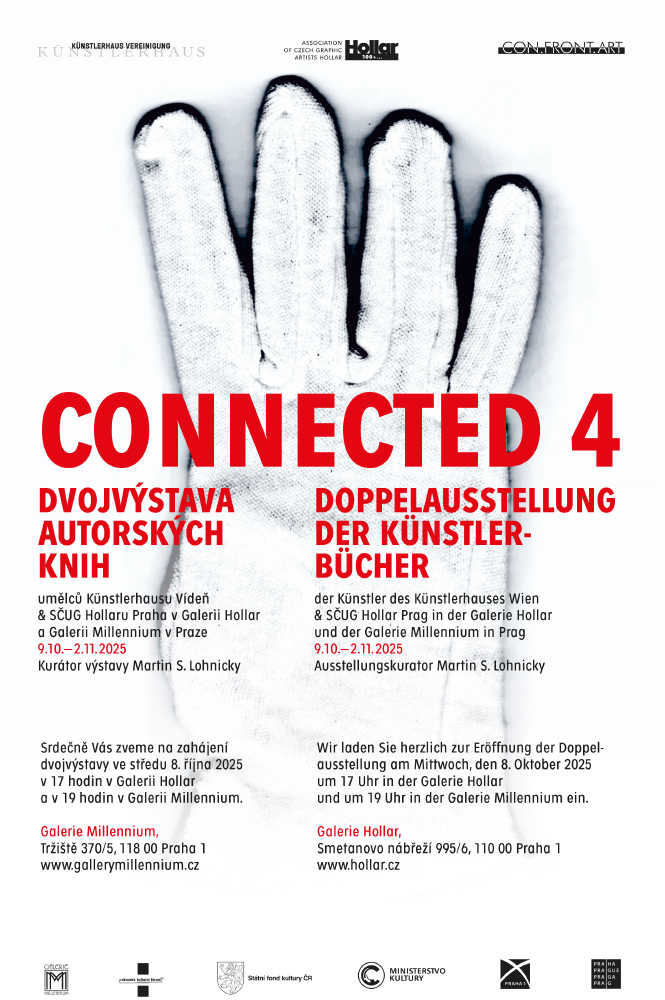 Výběr ze současné produkce autorské knihy rakouských a českých výtvarných umělců je představen paralelně v Galerii Hollar a Galerii Millenium v Praze od 9. 10. do 2. 11. 2025.